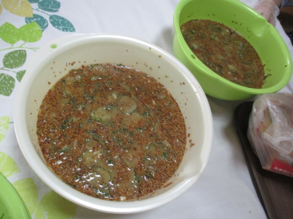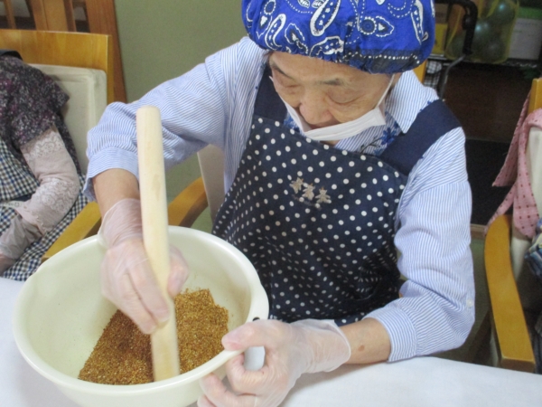 スタッフ青ちゃんの自宅から胡麻を持ってきてもらい