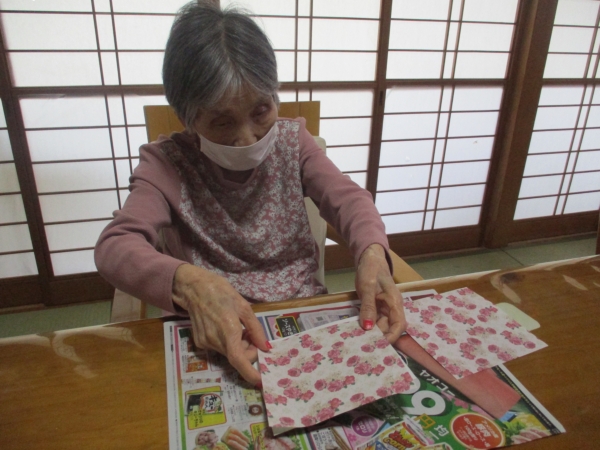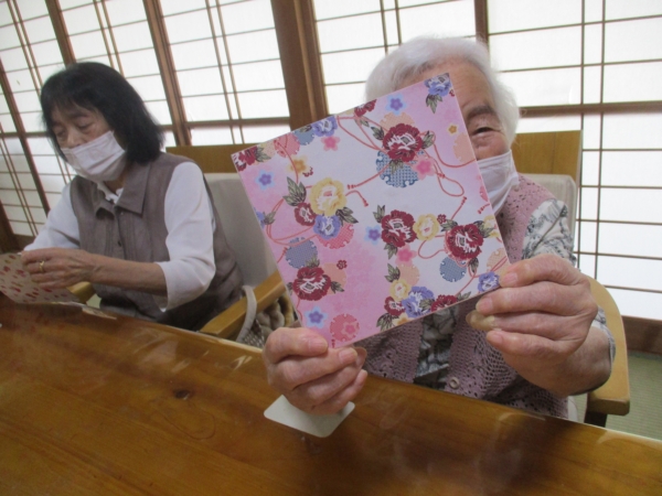 母が選んだ折り紙は、着物生地みたいで素敵ですね