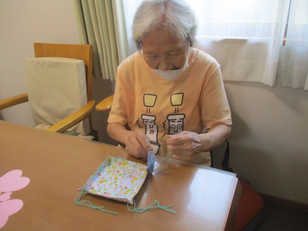 後は、つまんだ4隅を糸で結んだら完成で~す