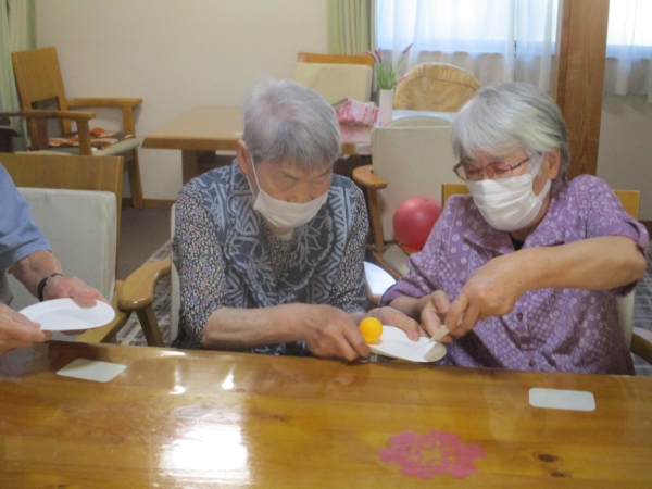 ボールやお手玉、ピンポン玉等を使ってリレーをしていきます。