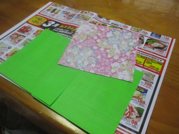 こちらの折り紙を使って製作していきますようれしい顔指でOK