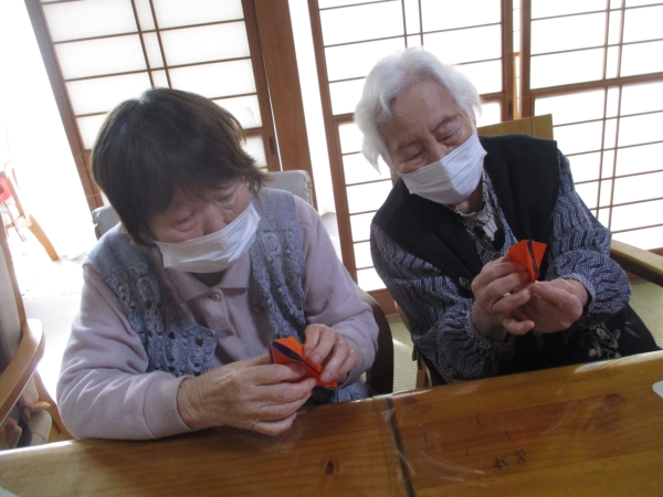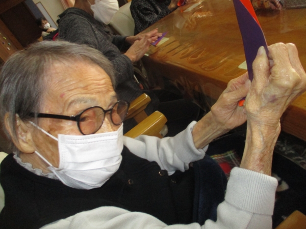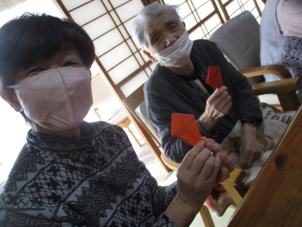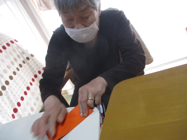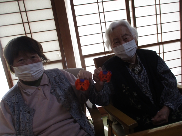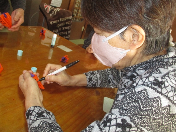 顔を書いて、折り紙を広げたら出来上がりになりますよ