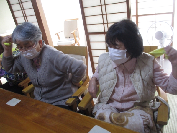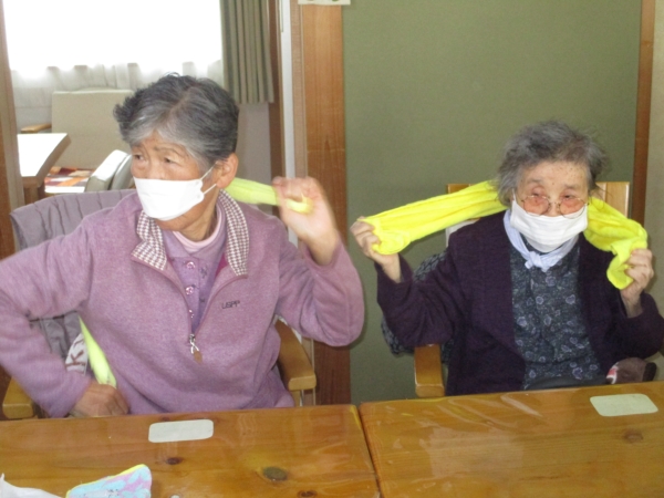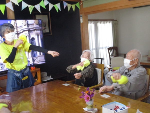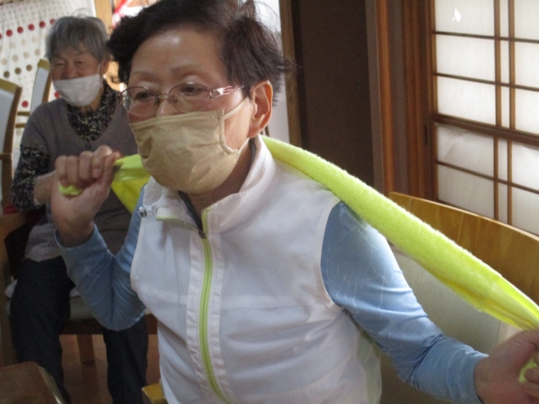 午前は、スタッフ関ちゃんのタオル体操からスタートです