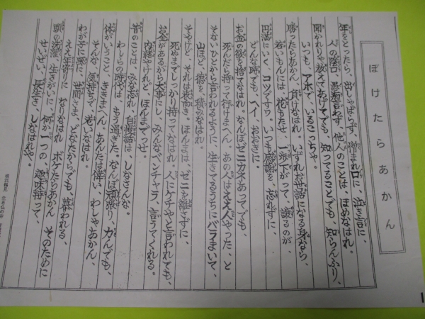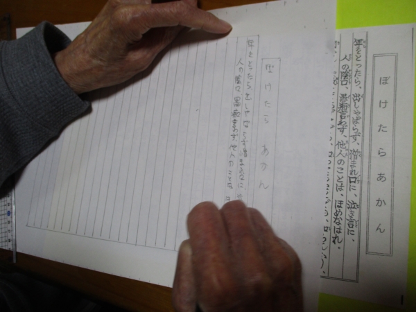ルーテインの一つ『ぼけたらあかん』を本日は書写