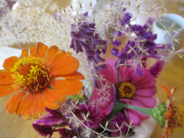 ご利用者様が、持って来て下さっお花わーい (嬉しい顔)ハートたち (複数ハート)