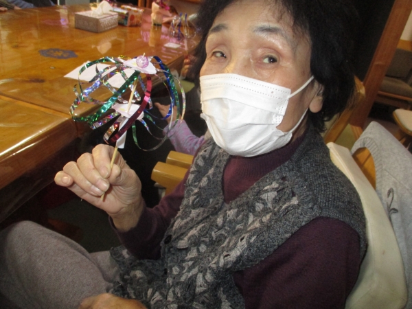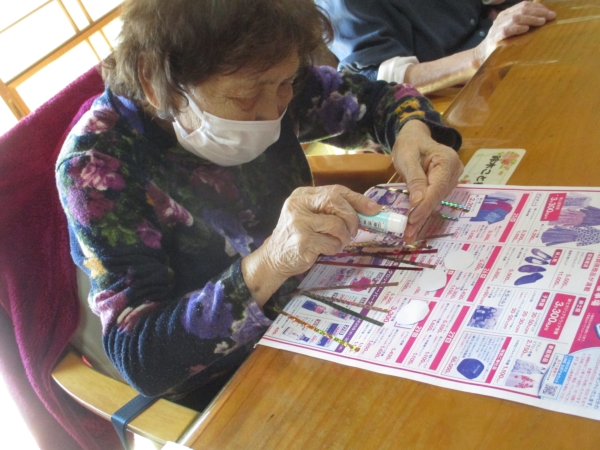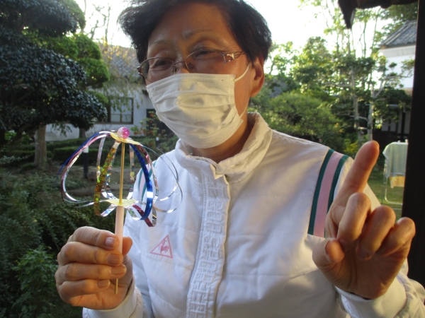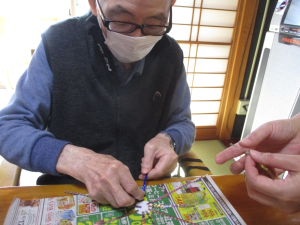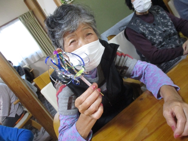 竹串を通して完成で~すわーい (嬉しい顔)ハートたち (複数ハート)