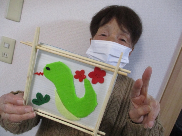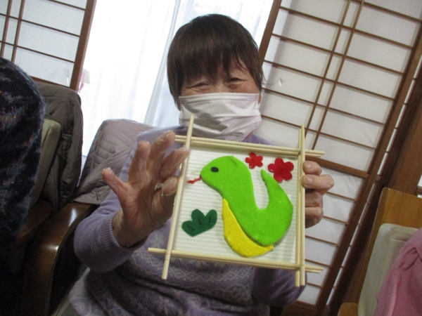 巳年飾りにとても喜びに溢れていました
