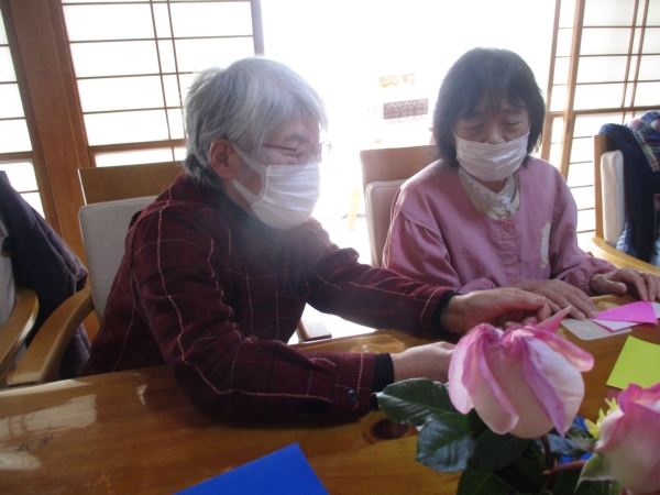 色々な色の折り紙を使って