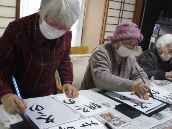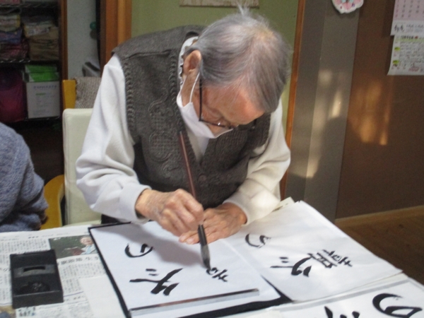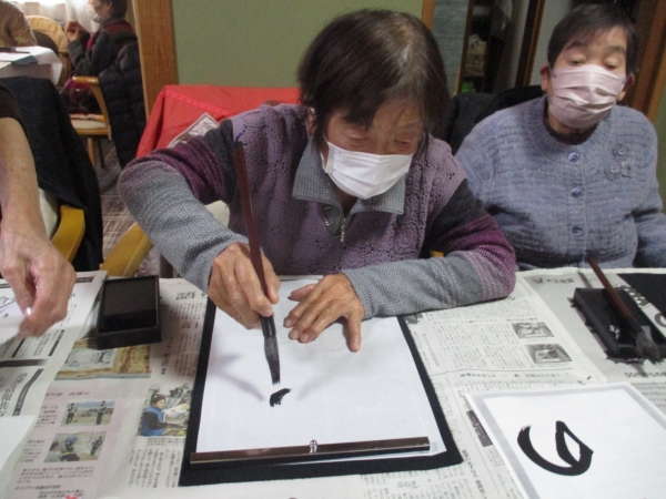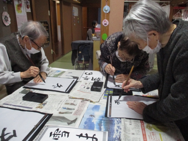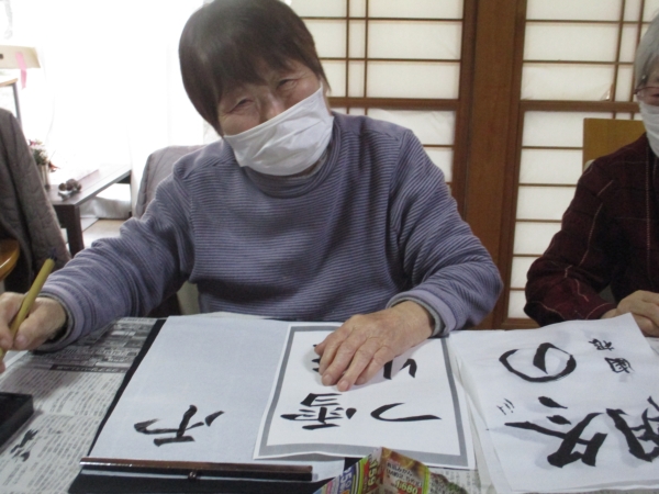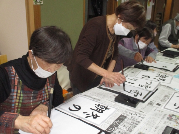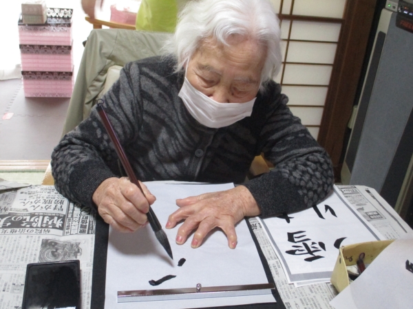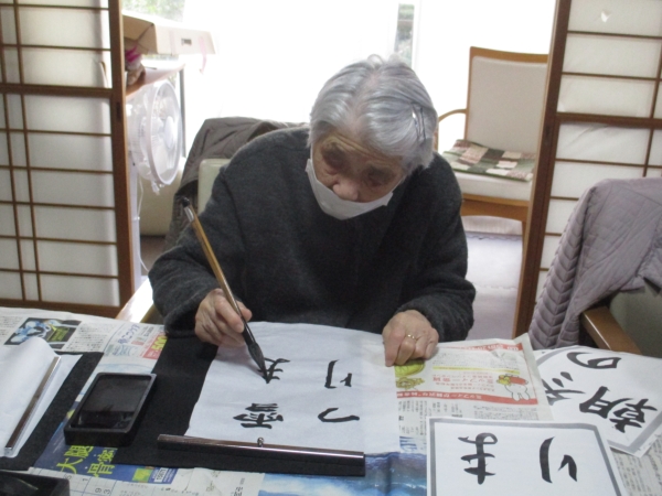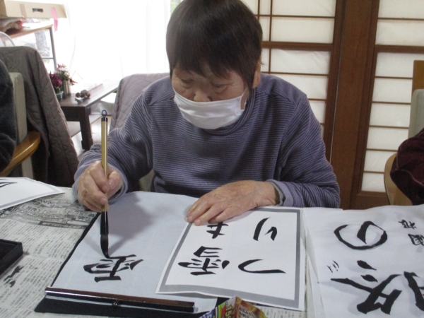習字は苦手と言う母も、皆で行うと筆が進みますよね