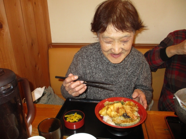 麺が苦手な母達は、天丼でお腹を満たします