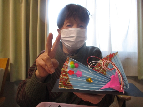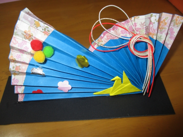 座り鶴に水引うれしい顔素敵な作品が出来上がりましたうれしい顔ハートたち (複数ハート)