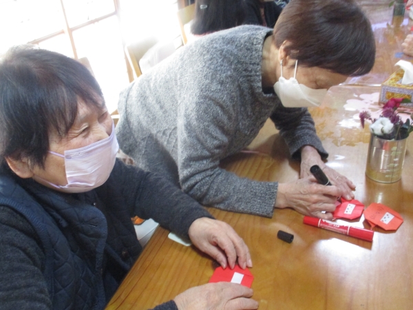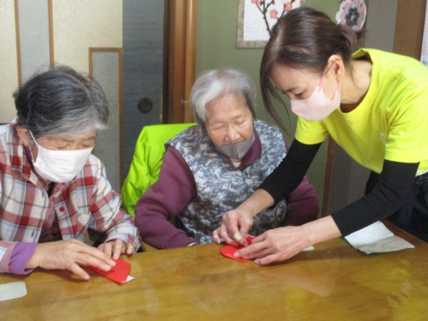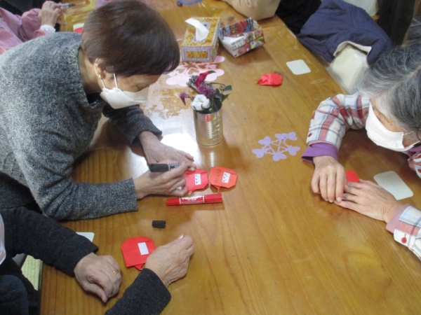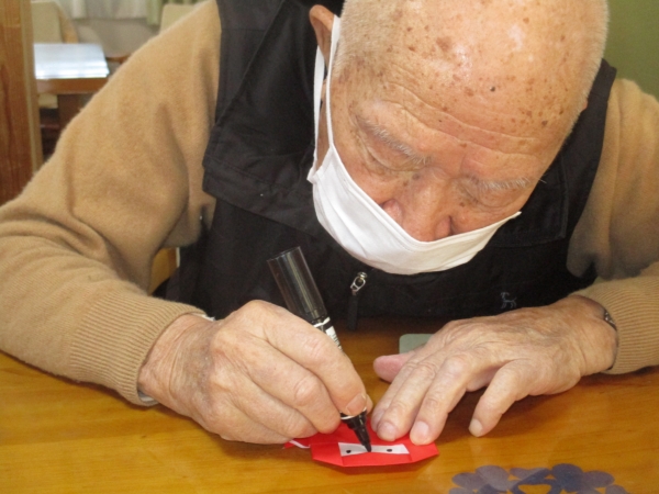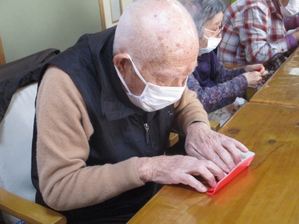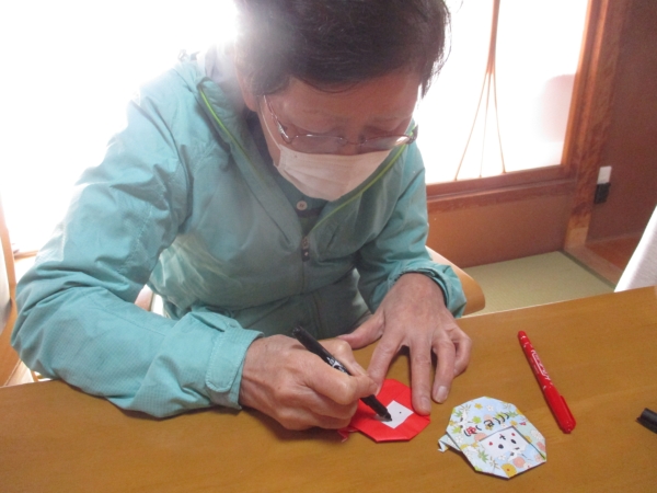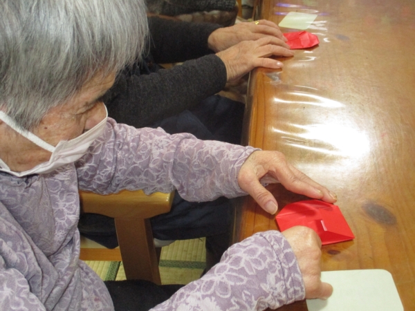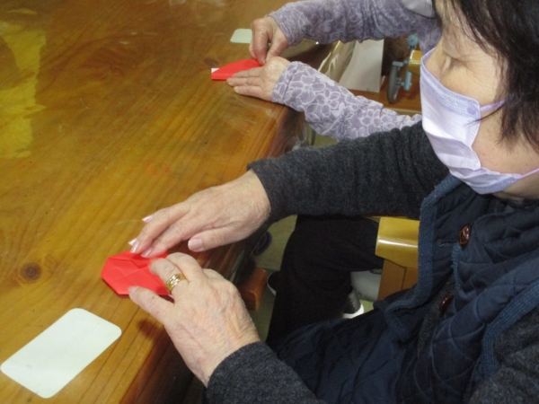 昨日に引き続き赤い折り紙を使って