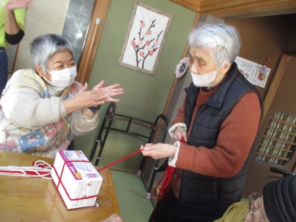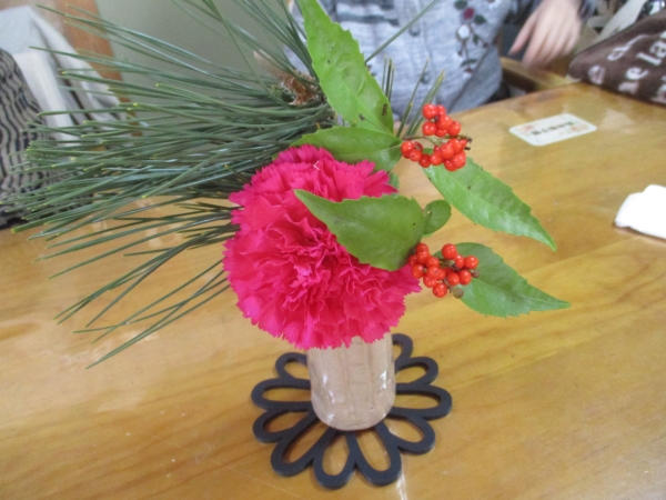 お正月のアレンジ花は利用者様の娘様よりお心遣いを
