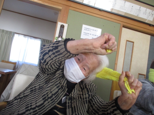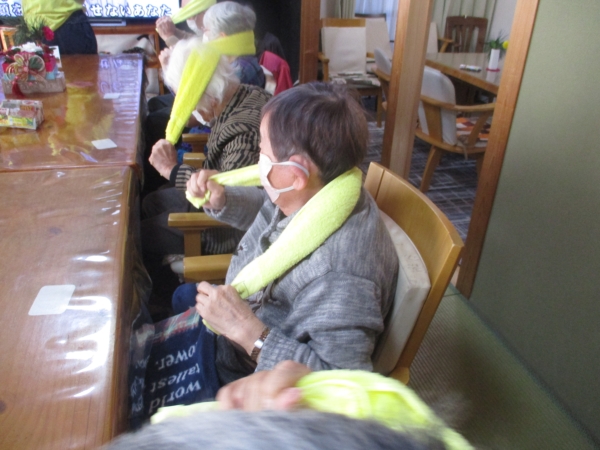 午前中はタオル体操