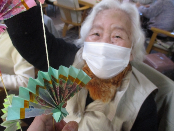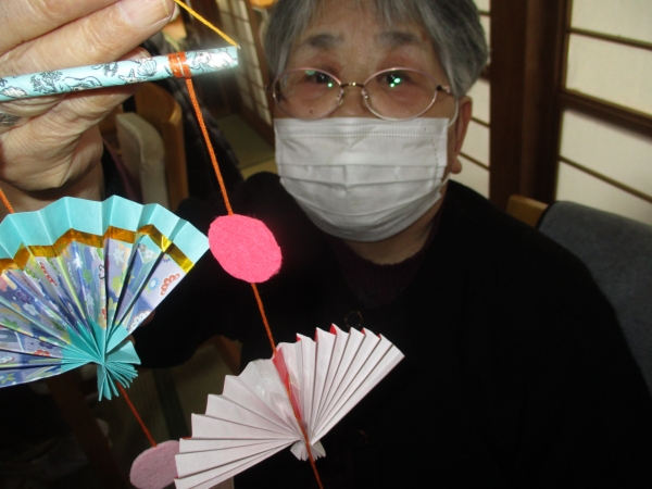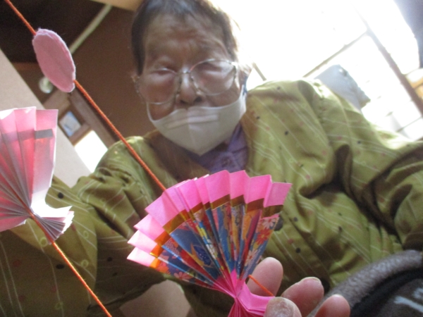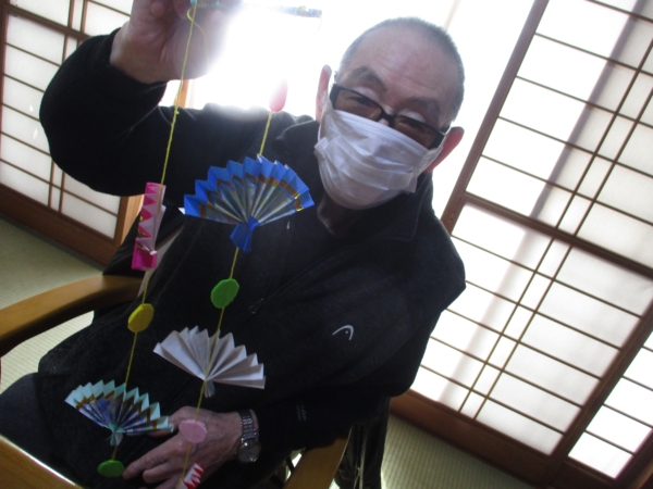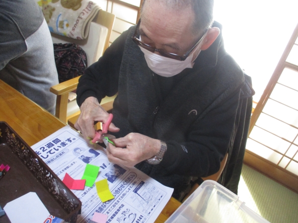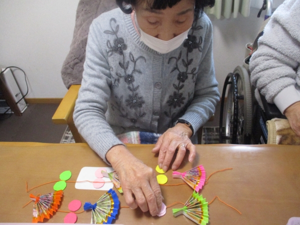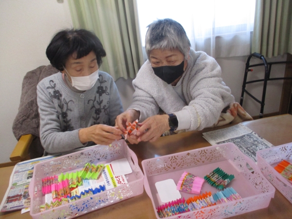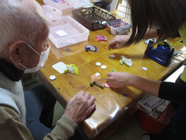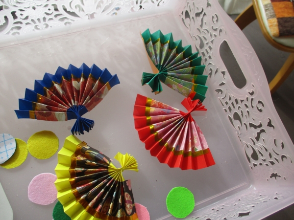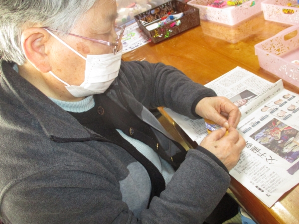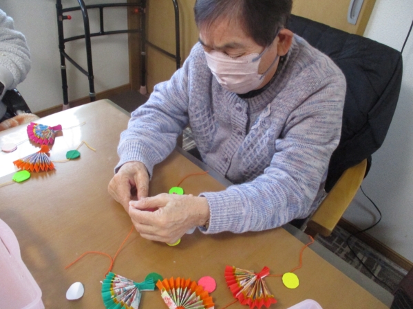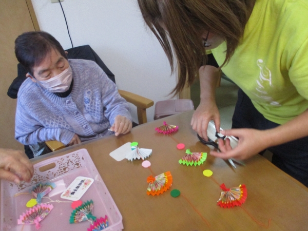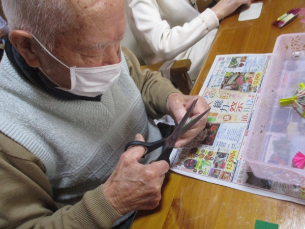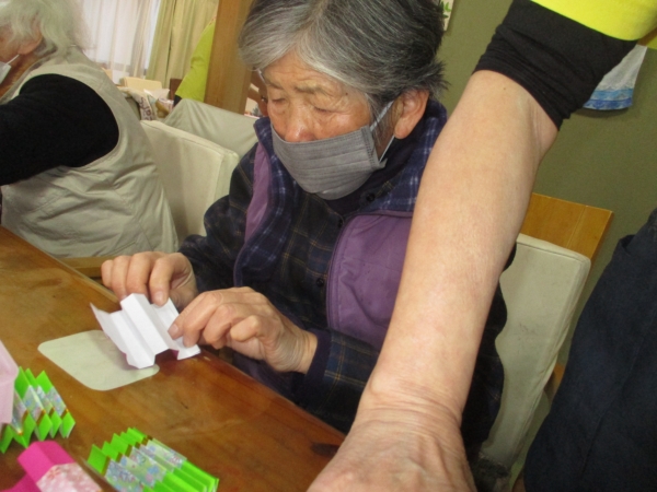 折り紙を一枚一枚、ジャバラ折りしてくんです