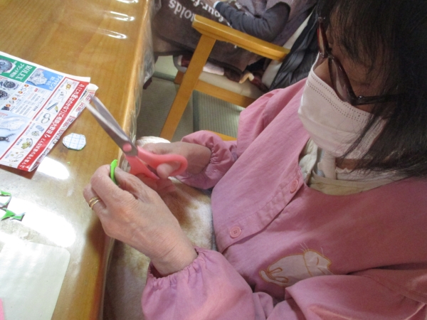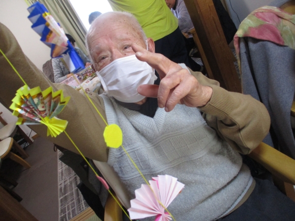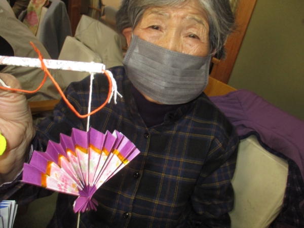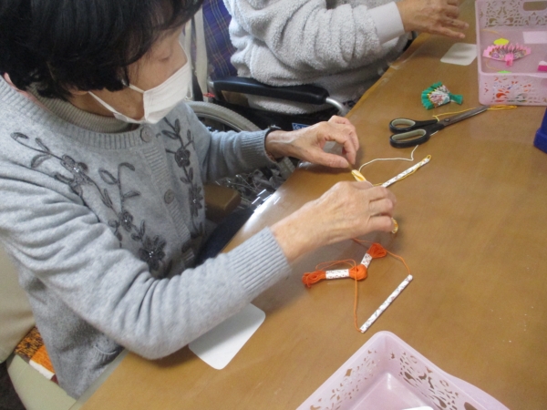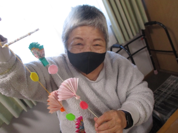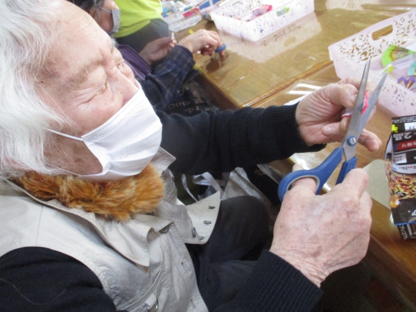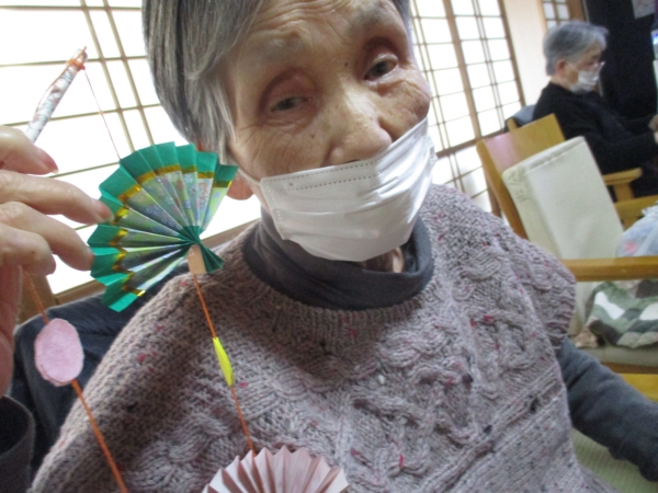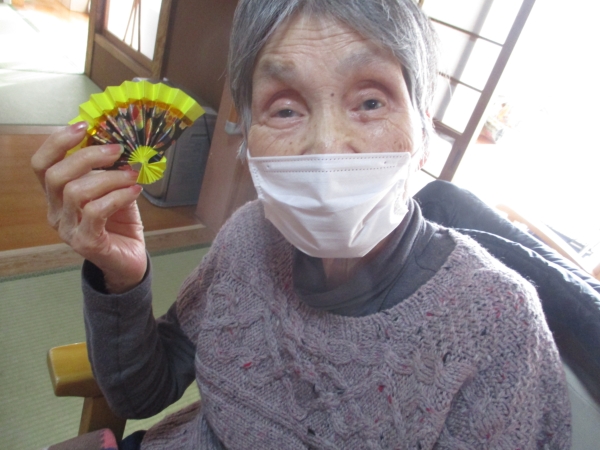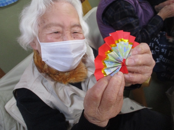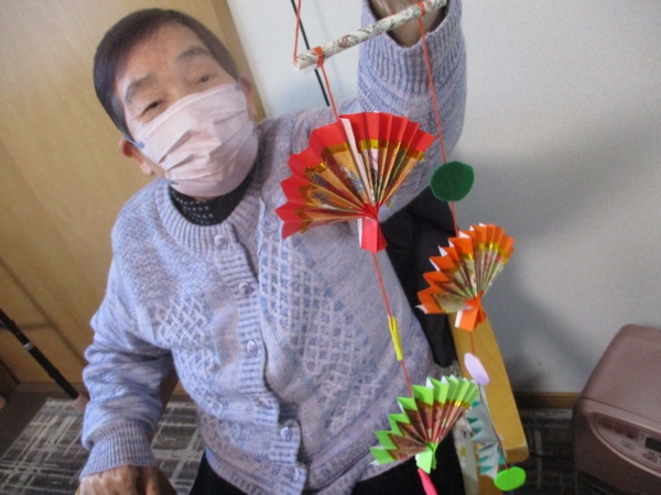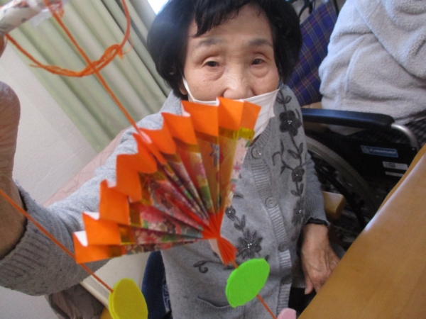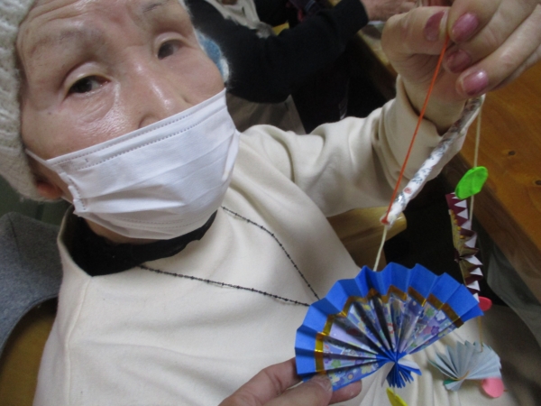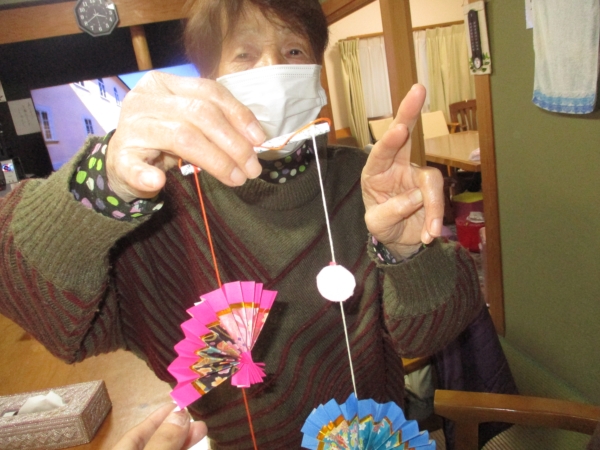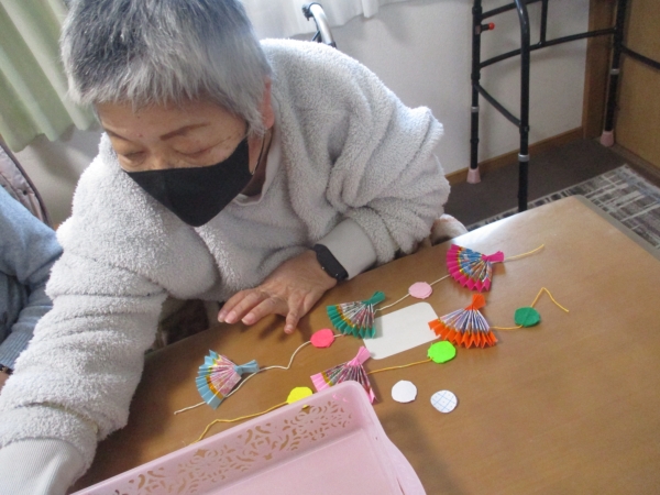 折り紙を一枚一枚、ジャバラ折りしてくんです