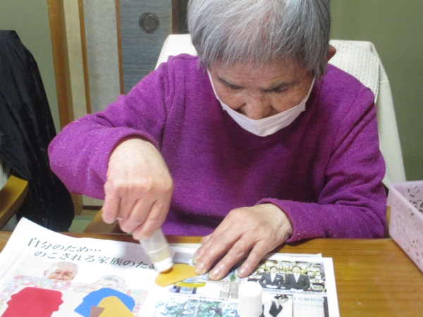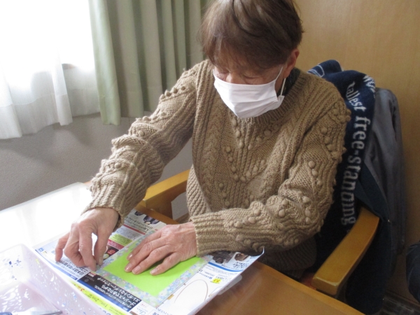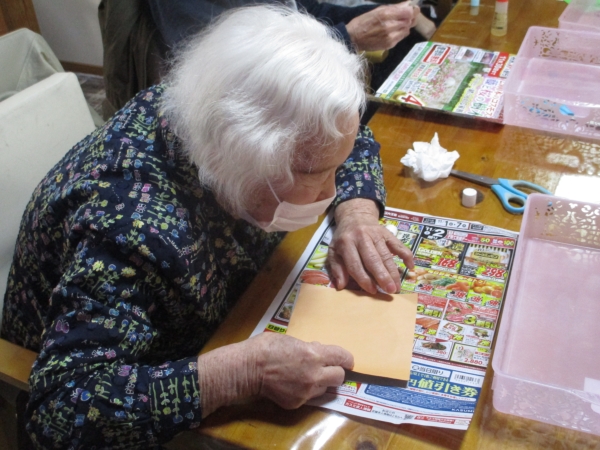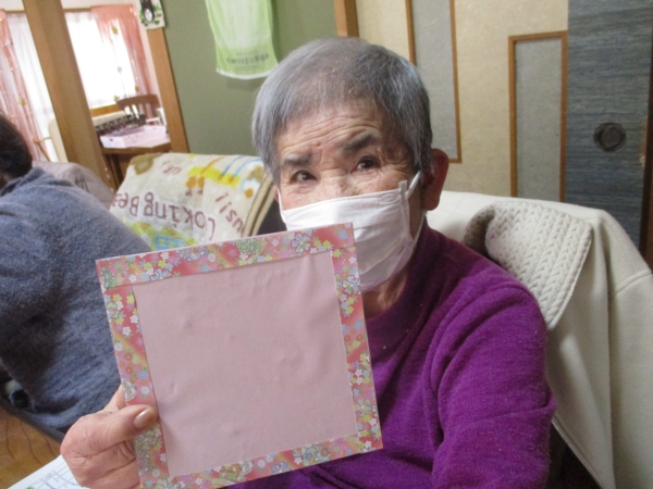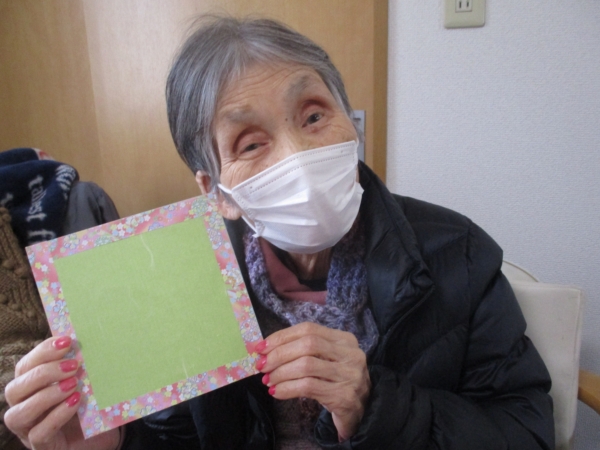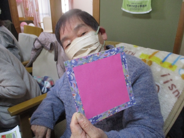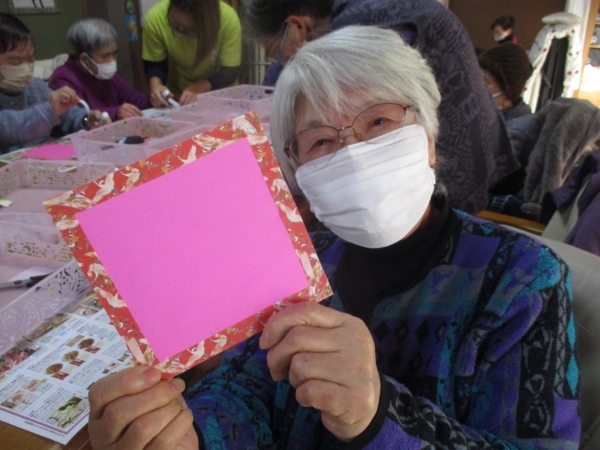 そして色紙の上に好きな色の千代紙で四隅に縁取りをしましょう