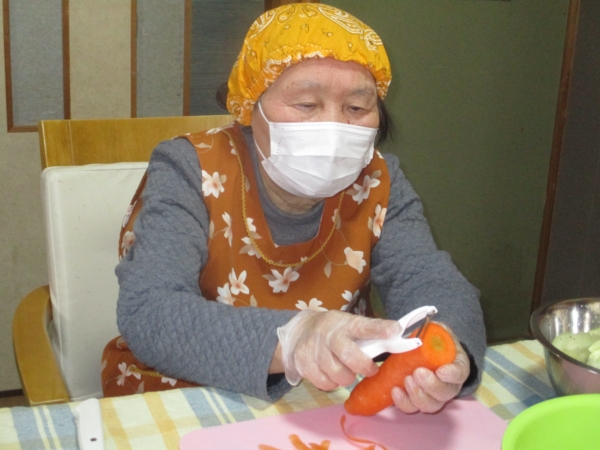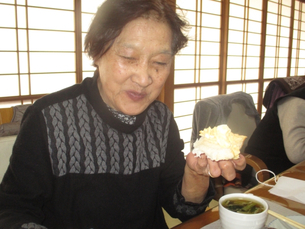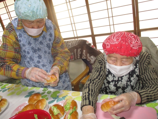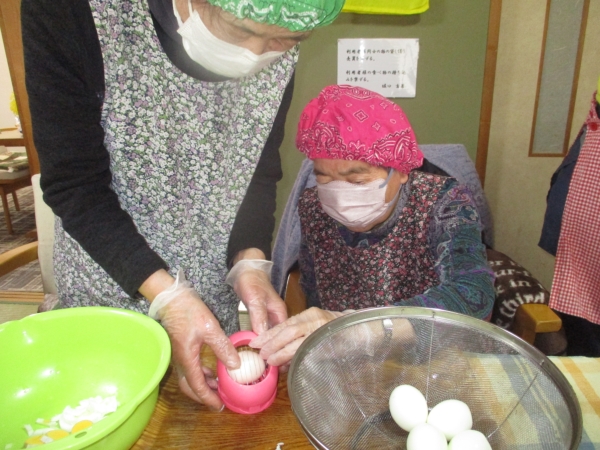 こちらの母達は、卵の殻をむいて卵サンドイッチを作っています。