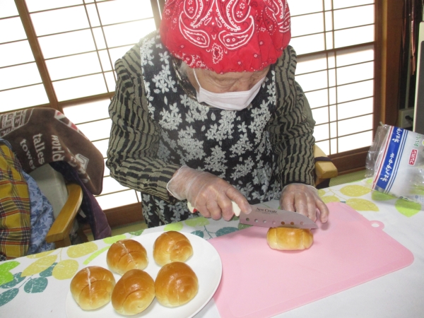 母がサンドイッチ用のパンに包丁で切れ目を入れてくれました。
