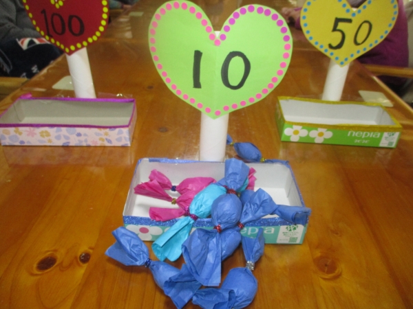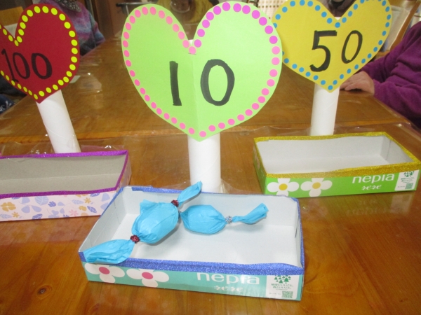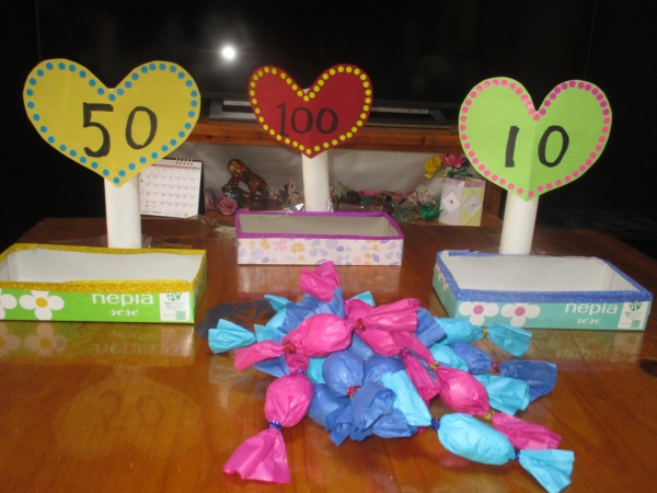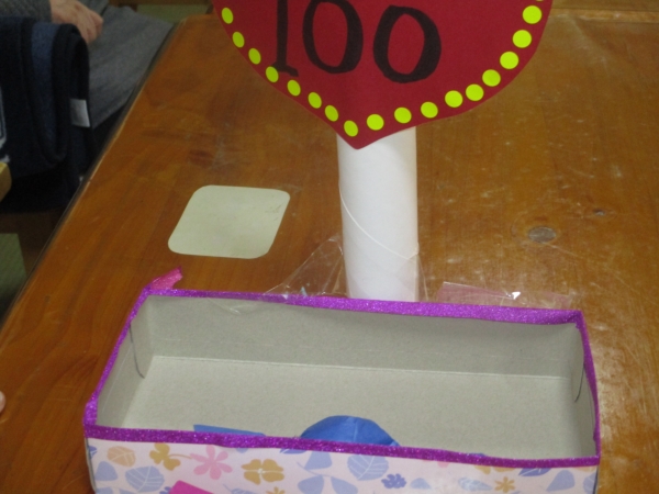 母の投げたキャンディーが100点の箱….