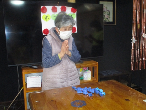 「わぁ~、嬉しい~」と笑顔で喜ぶ母
