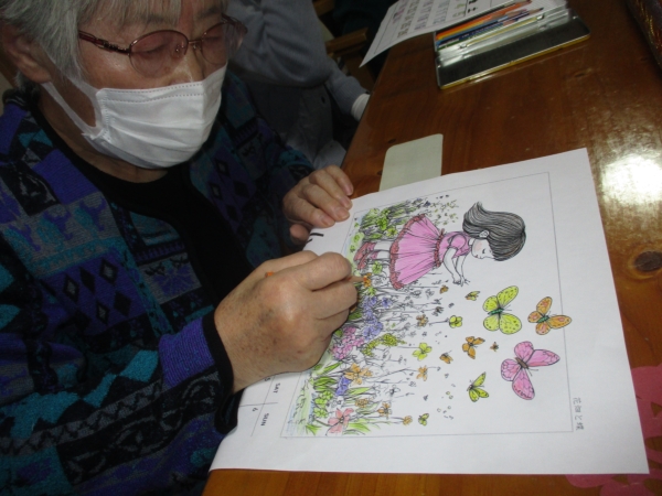 可愛らしく色塗りが出来ていますわーい (嬉しい顔)ハートたち (複数ハート)