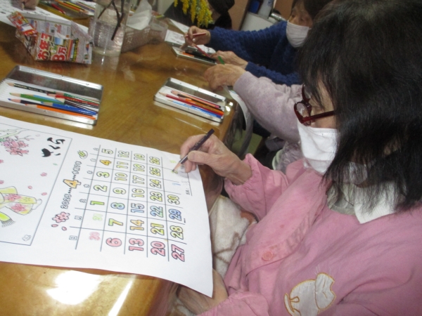 来月のカレンダー作りを行いましたわーい (嬉しい顔)ハートたち (複数ハート)
