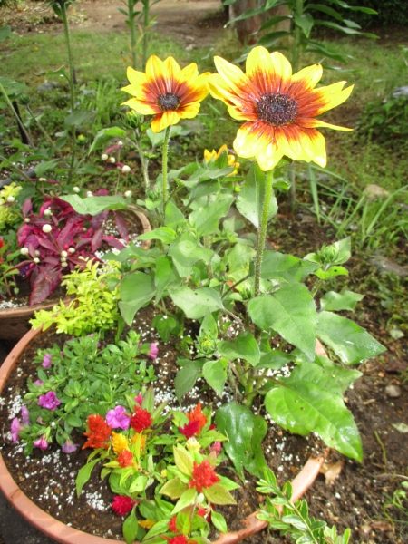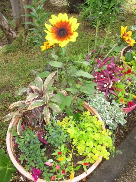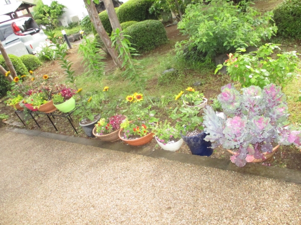 幸せの幸望庵の玄関前のパンジーのお花たちが