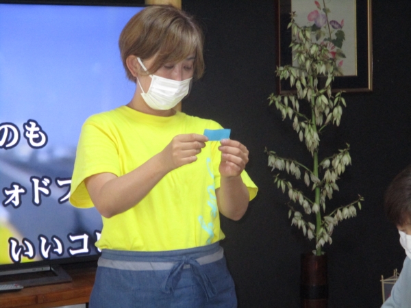 スタッフかなちゃんの説明を聞きながら紫陽花のガク作りからスタートです