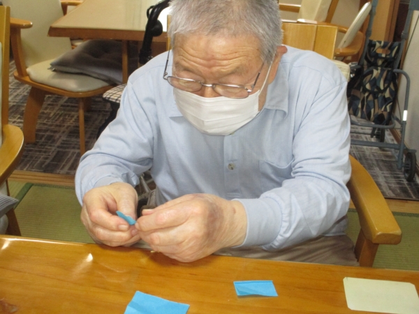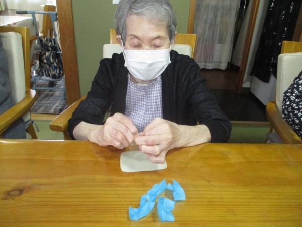 午前。午後と指を使ってものつくりやゲームを行ないました。