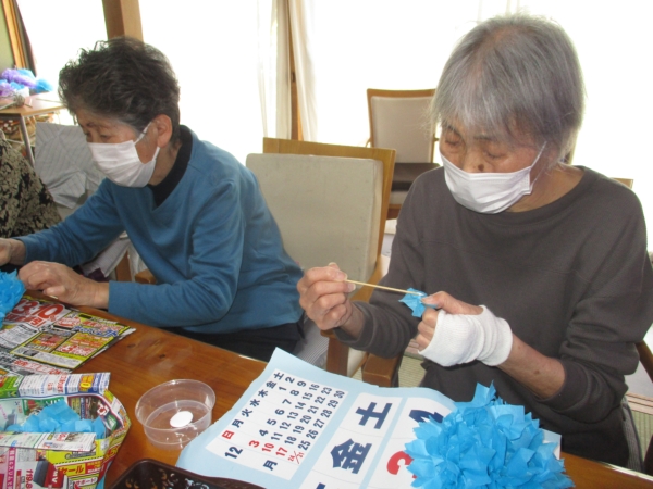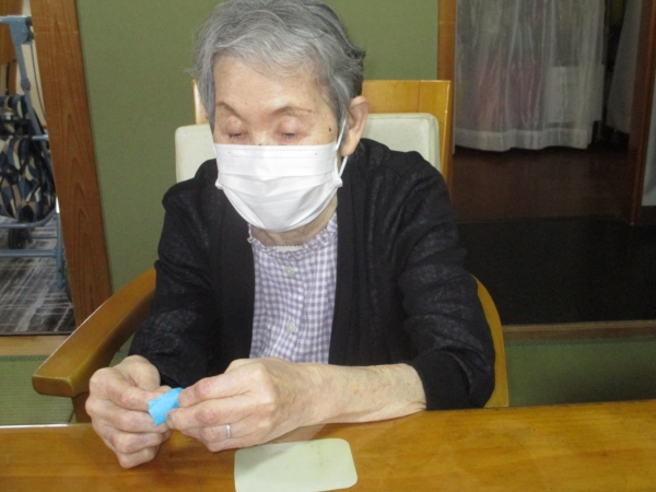 先週作ったお花に『ガク』を糊で付けていきましょう