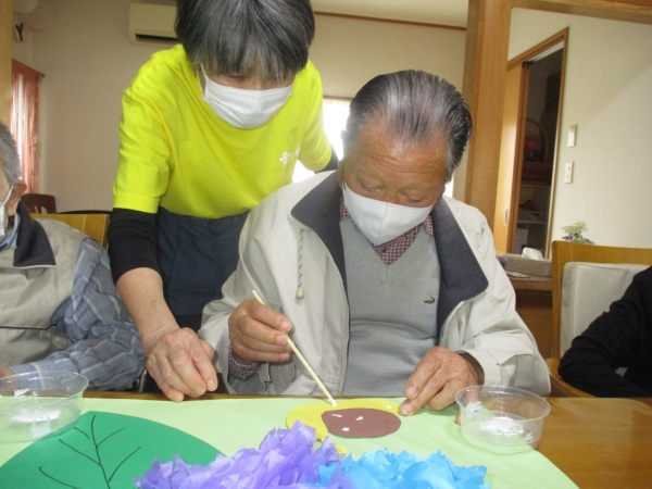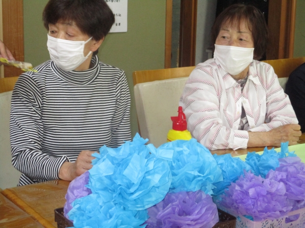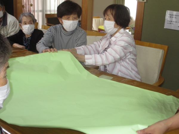 そして皆さんで作ったお花を模造紙に貼り付けていきますよ~