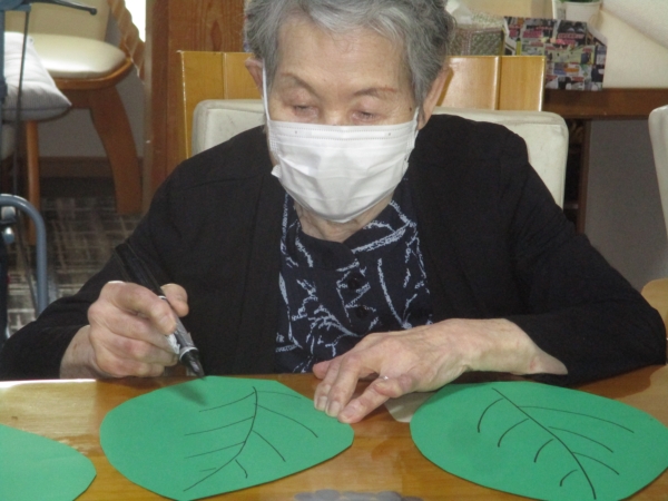 母が描いているのは…紫陽花の葉