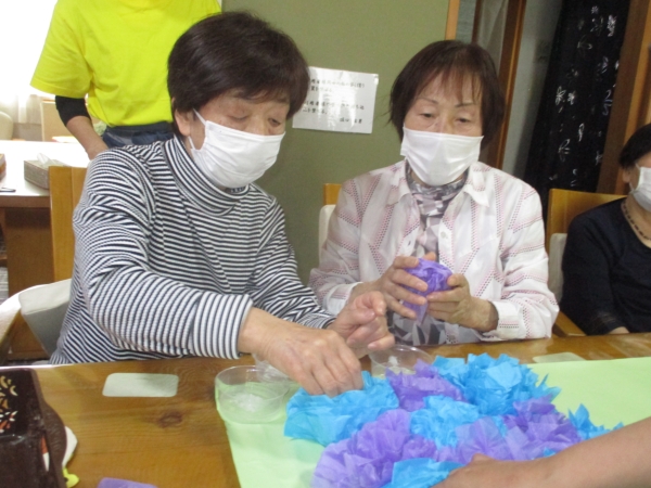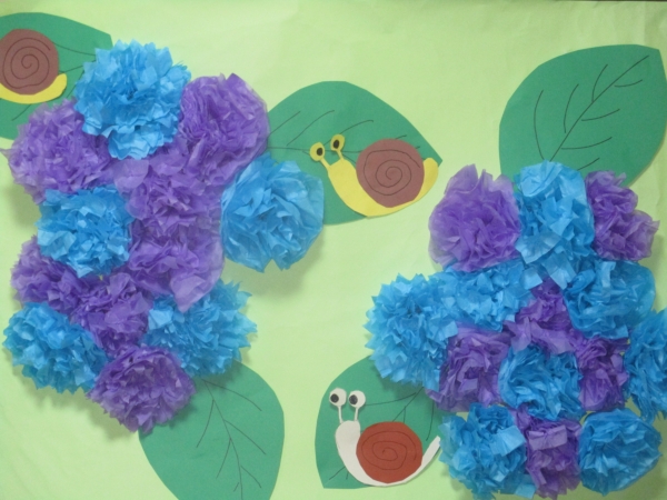 水色と紫の2色を上手に組み合わせて紫陽花の出来上がり~