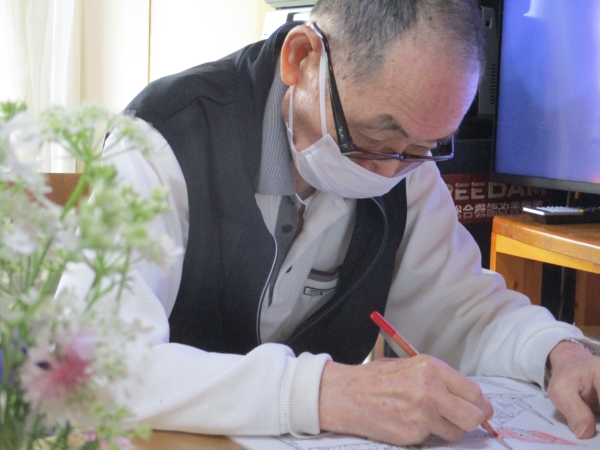 塗り絵や、点つなぎを楽しんでいただきま~す目がハート (顔)