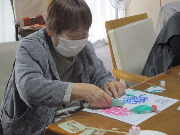 折り紙で作った葉っぱを飾っていきます芽芽芽