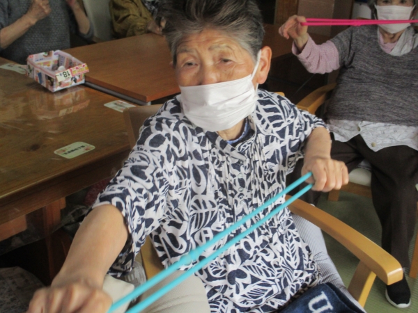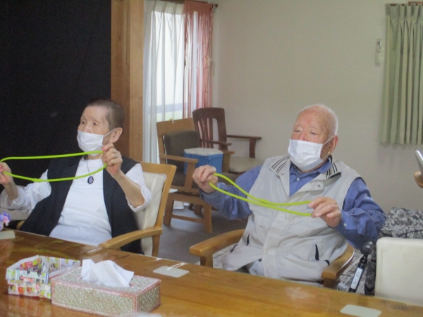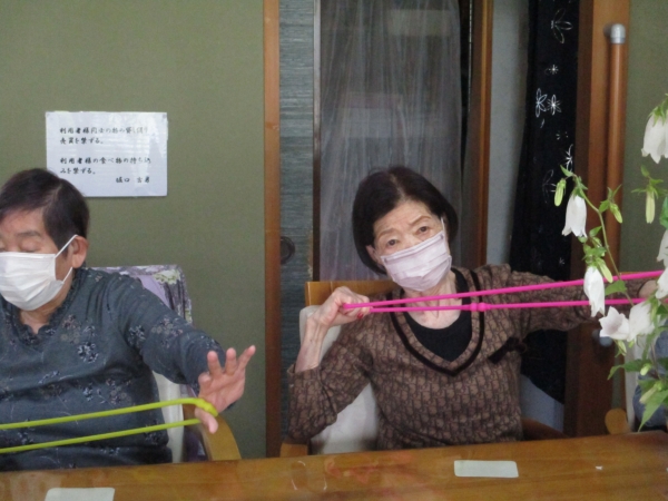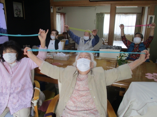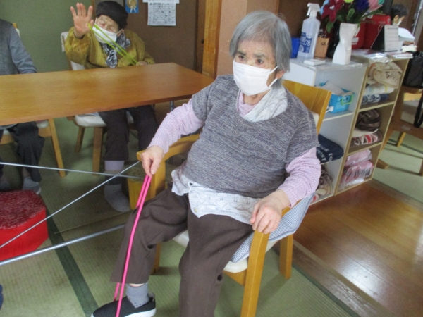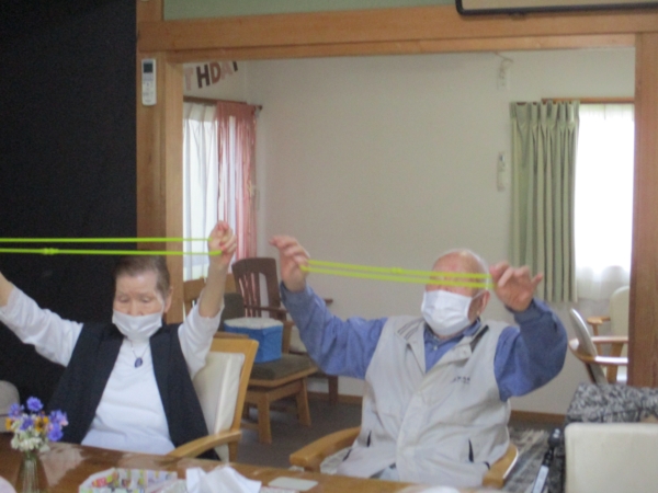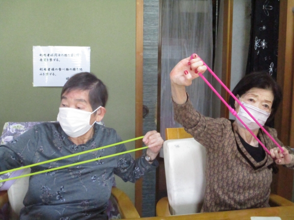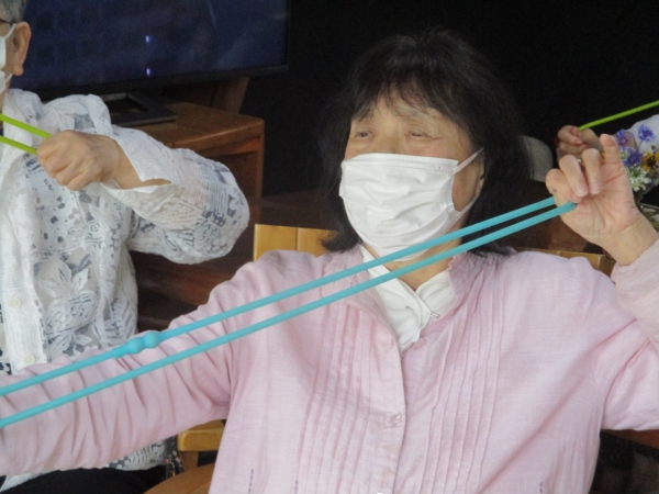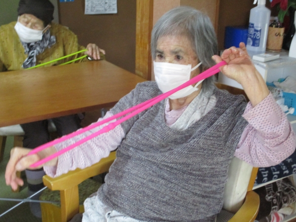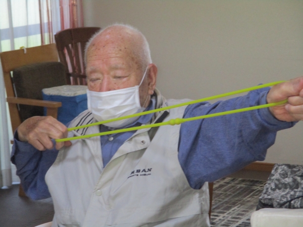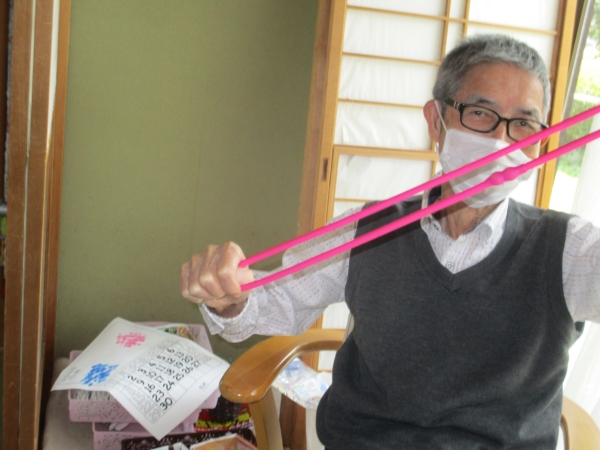 今日は、ゴムを使用して上肢を鍛えていきましょう
