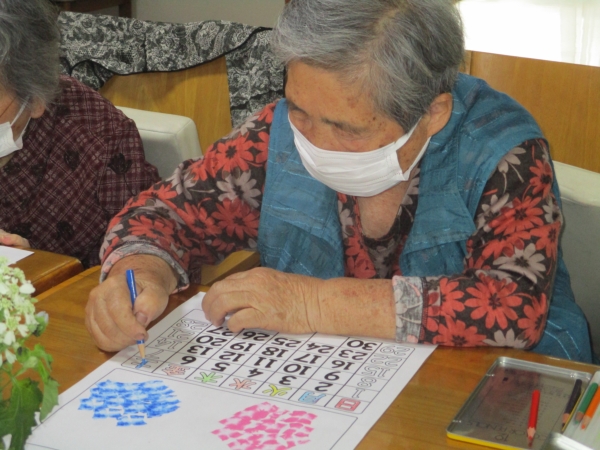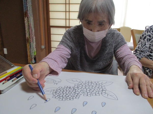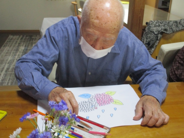 …という事で6月を代表する花、紫陽花の塗り絵を用意しました