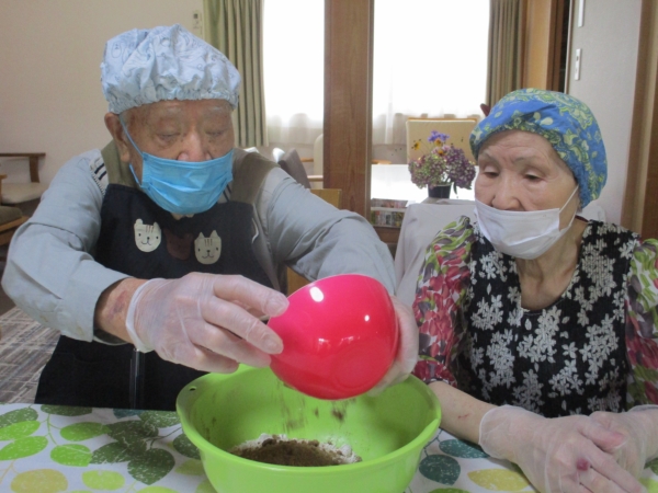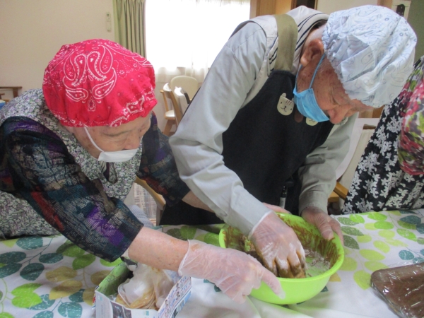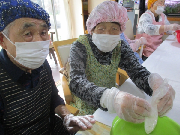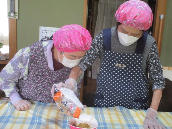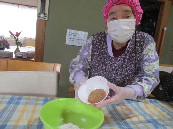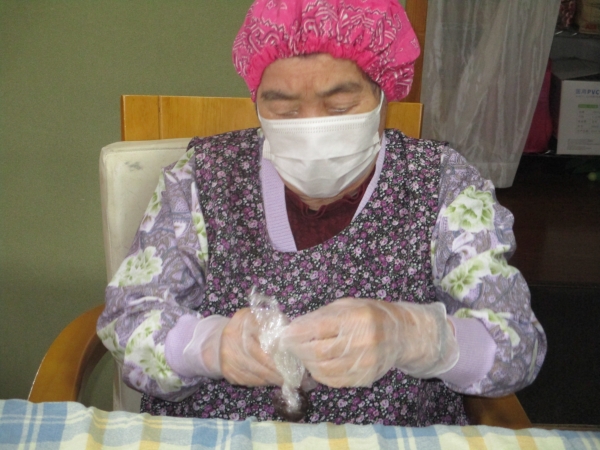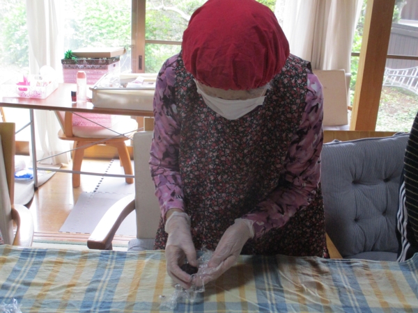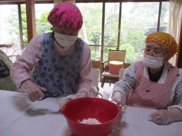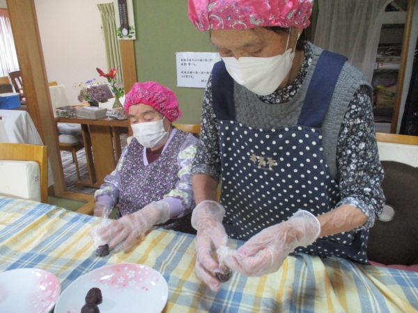 こちらの母達は、中に入れるあんこ玉作りをしています。