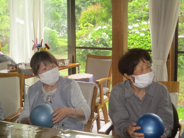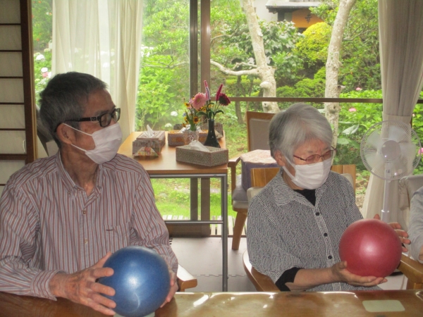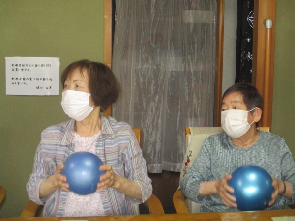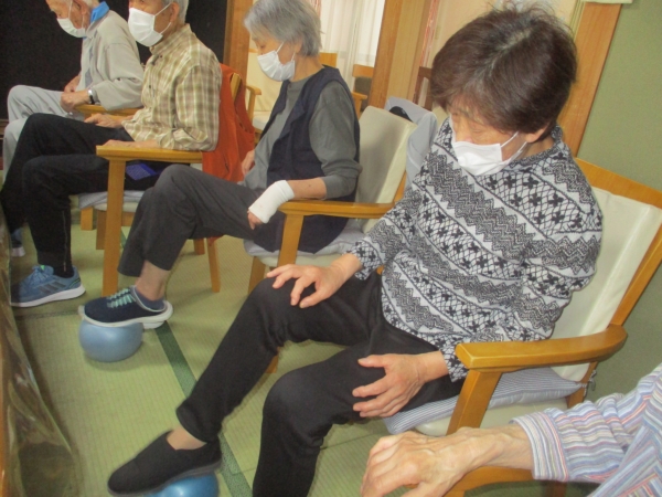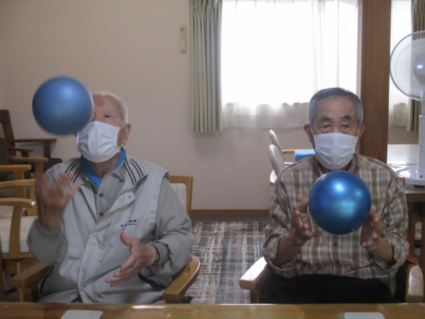 スタッフ関ちゃんの号令でボール体操を始めて行きます