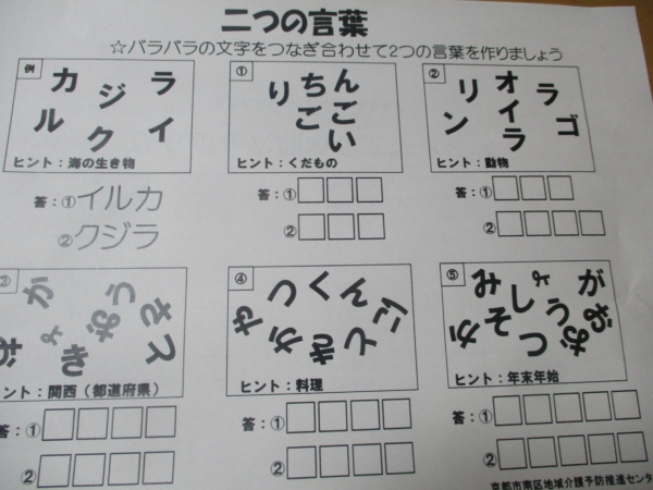 午前中は、体操で身体を動かしたので午後は頭を使っていきましょう