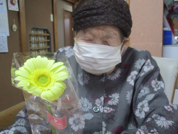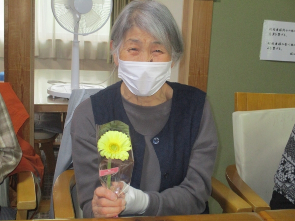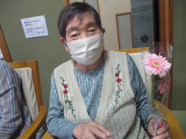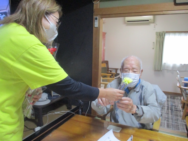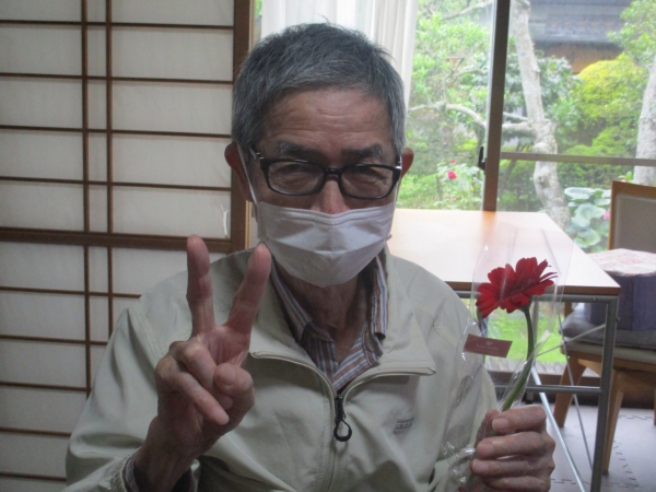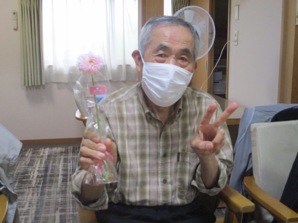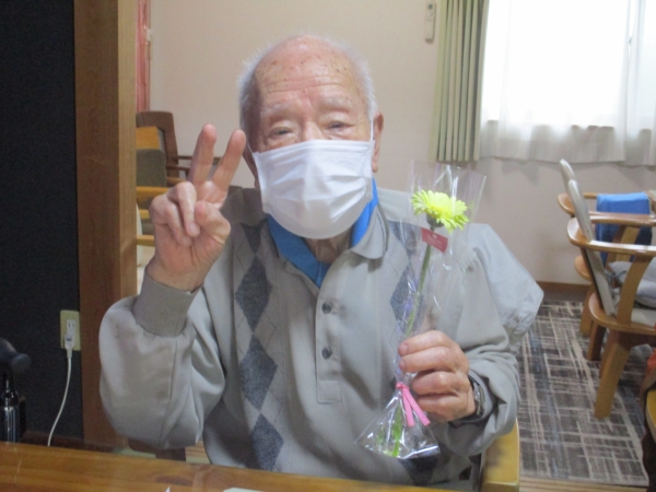父達に好きな色のお花を選んで頂き、『はい、ポーズ』