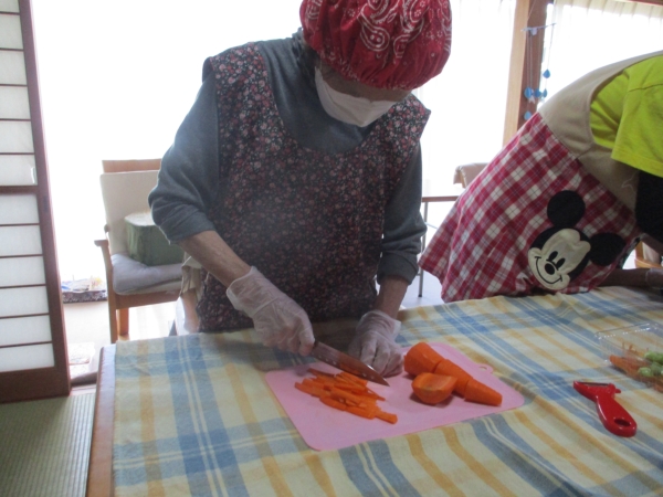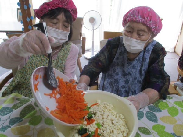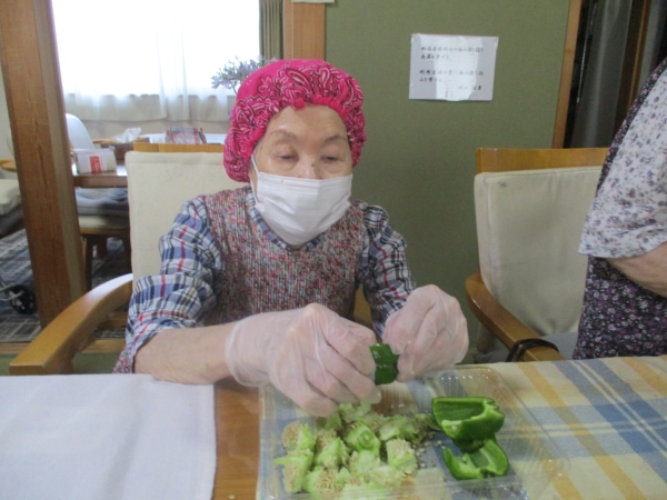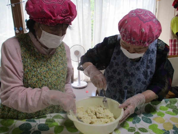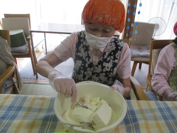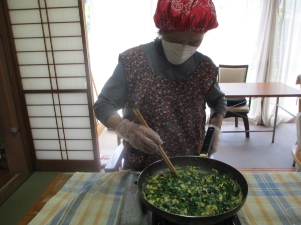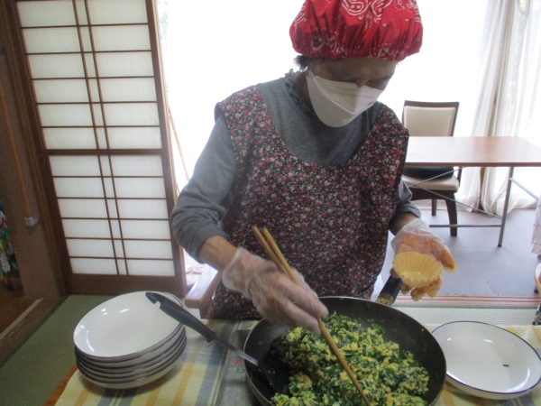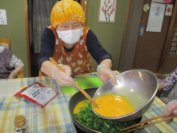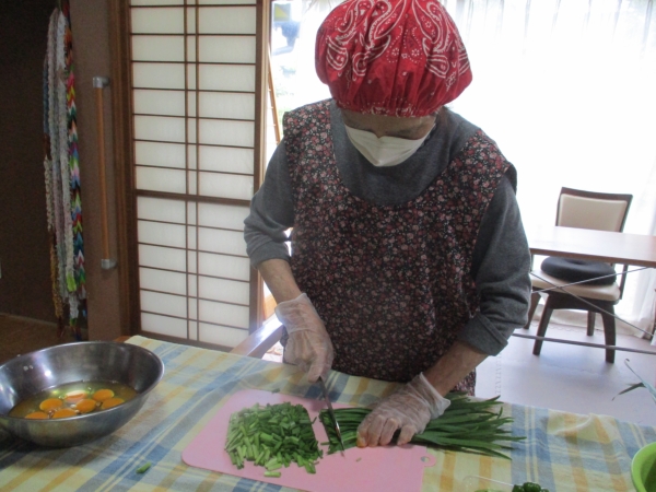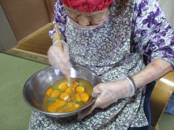 最年長の母が卵を割り、溶き卵を作ってくれました~