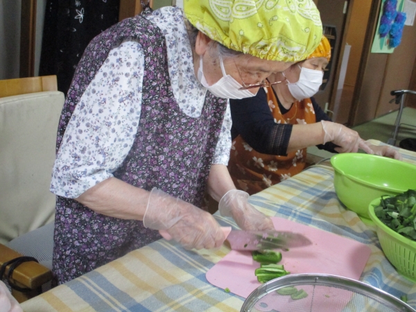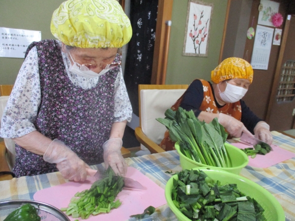 先ほど切ったニラは、水洗いしごま油で炒めていきます。