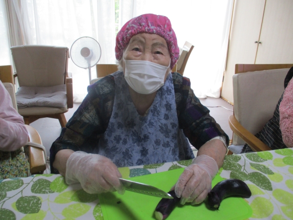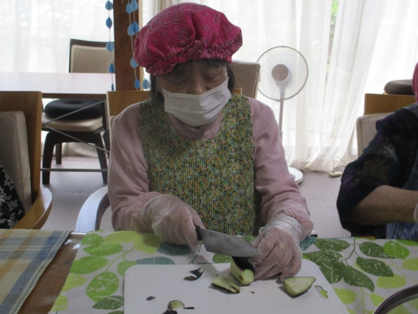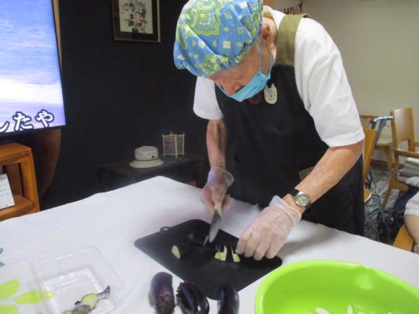 ナスは、縦・横とも半分に切って、食べやすい大きさにカットしましょう🍆