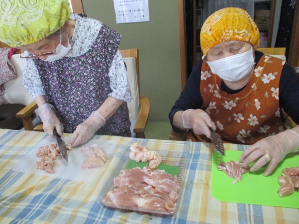 鶏肉は、丁寧に皮を取り、味がしみ込むようにそぎ切りにします
