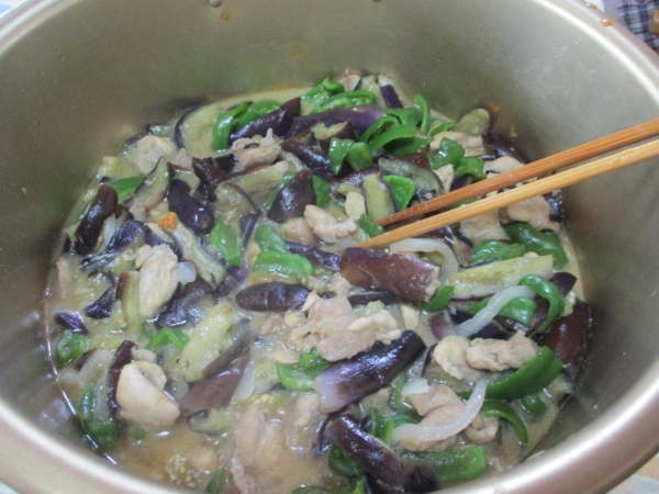 「ナスとピーマンと鶏肉のスタミナ味噌炒め」が出来上がりました~