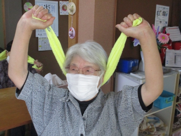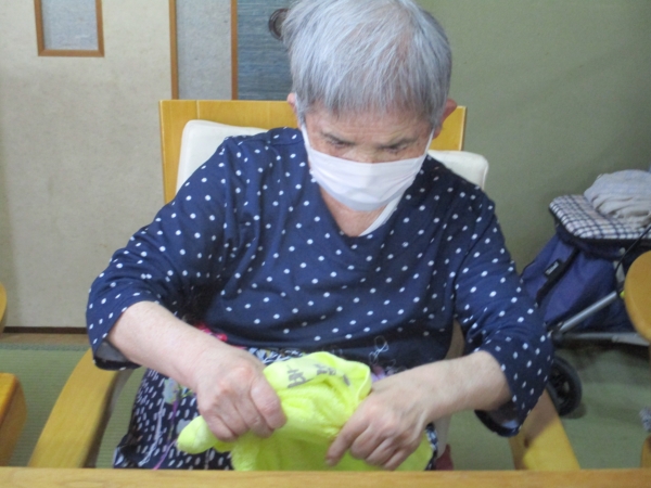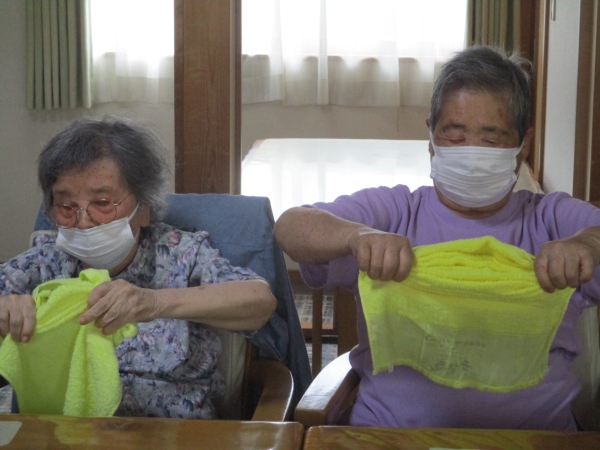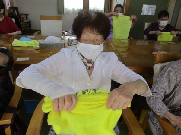 指先を使って「クシャ・クシャ」とタオルを縮めていきましょう
