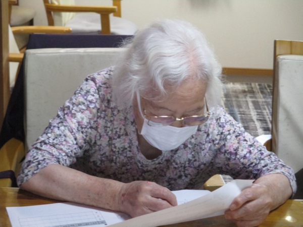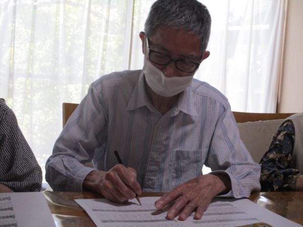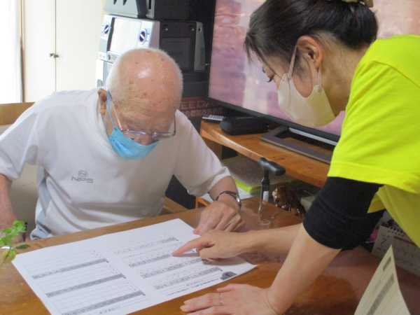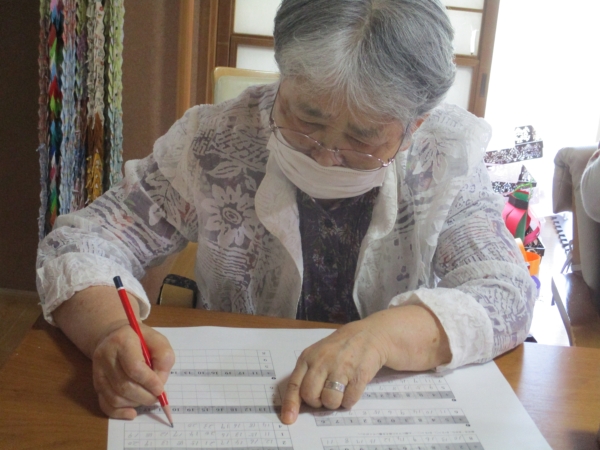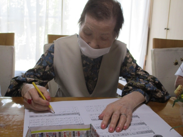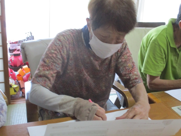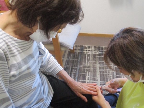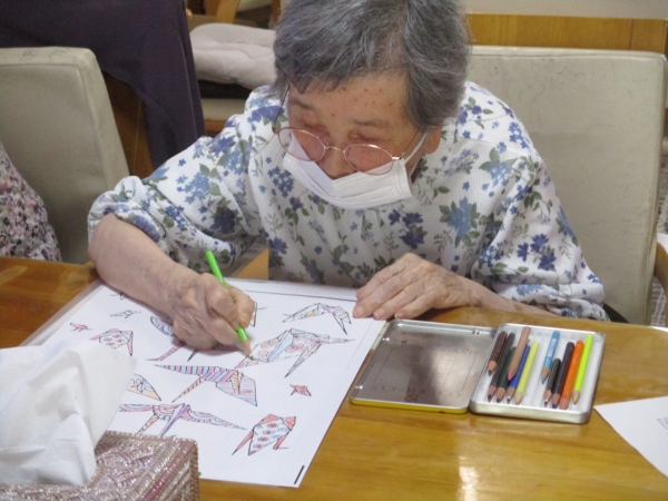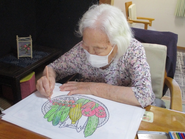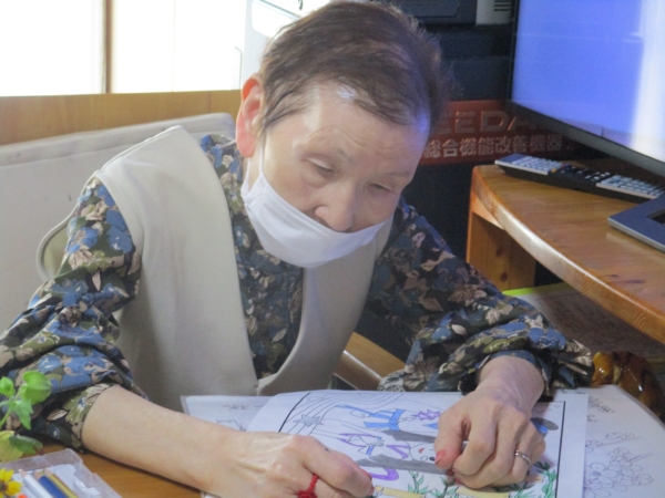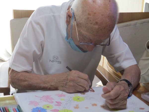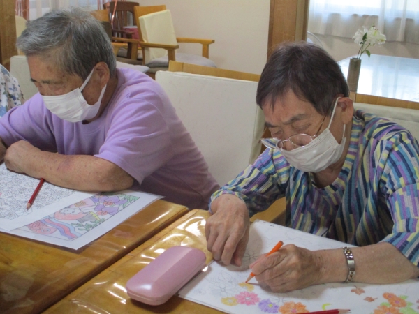 スタッフが爪のお手入れをしている間、父・母には塗り絵をして頂きました鉛筆