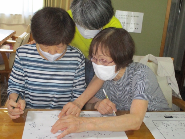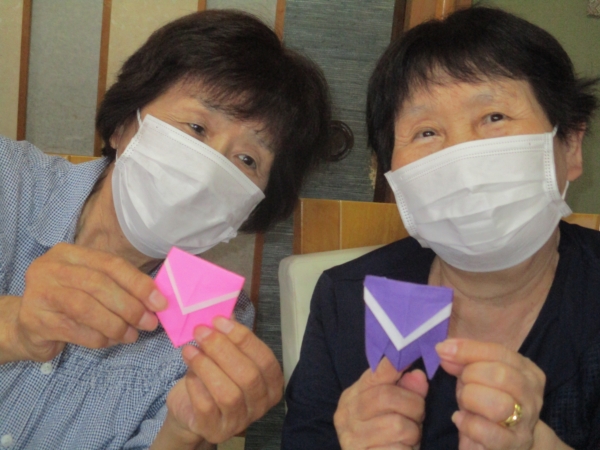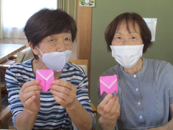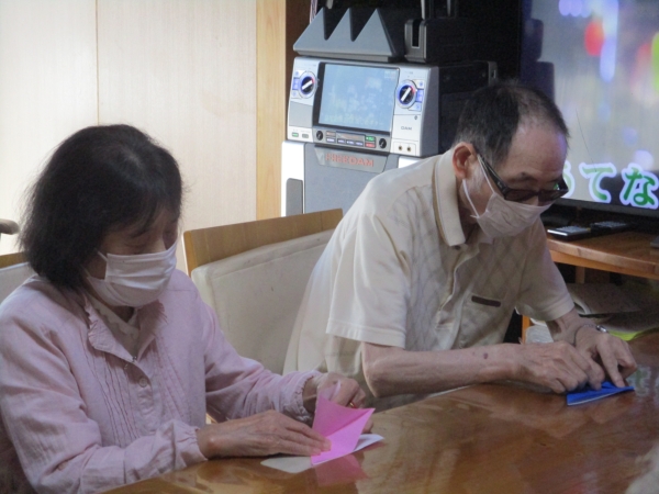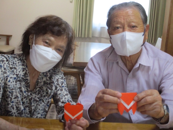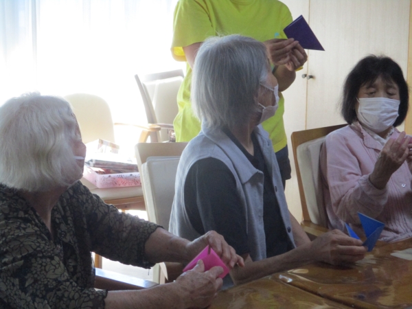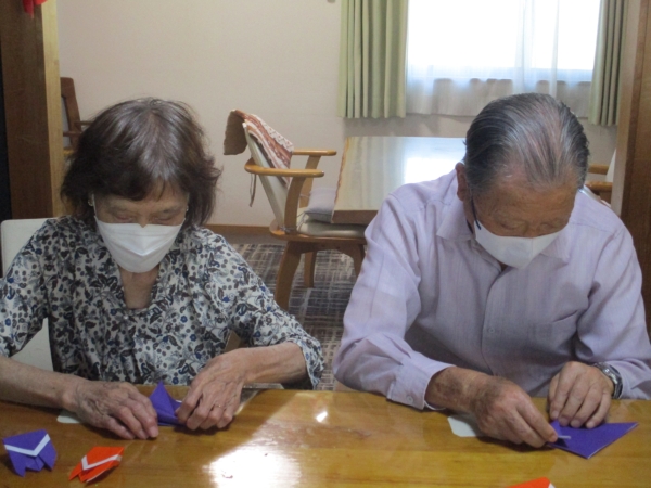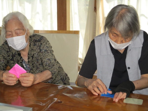 こちらは、お隣りさんと折り方を考えながら進めていました